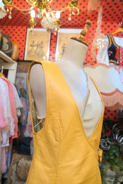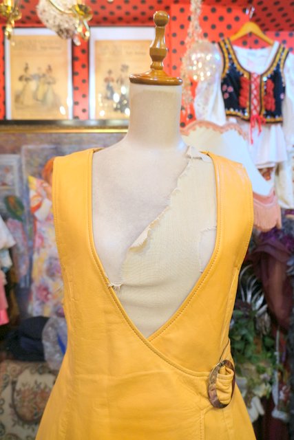 フリルブラウスやベルボトムと相性◎な1960~70年代頃のヨーロピアンヴィンテージレザーワンピース