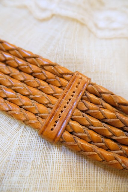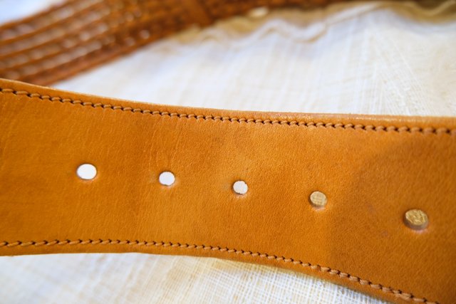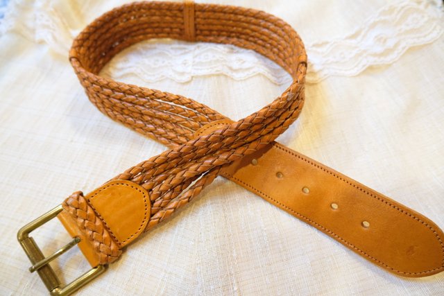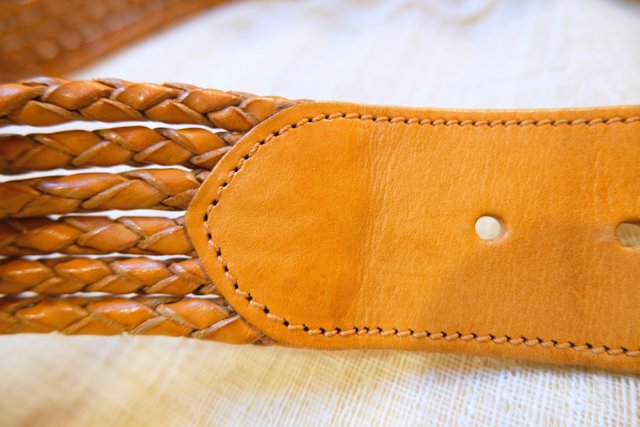 しっかりとした厚みがある本革に6連の編み込みデザインがお洒落なイギリス製RALPH LAURENベルト