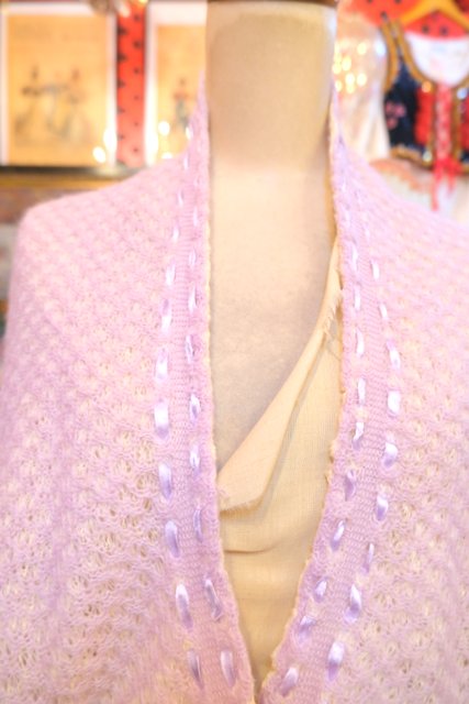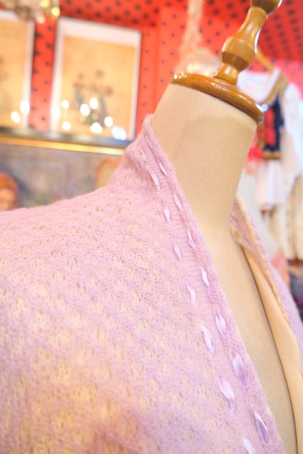 淡いパープル×クリームの2枚重ねにテープやショールカラーが素敵な1960年代頃のイタリア製ヴィンテージニットカーディガン