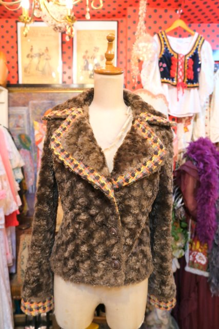 ヨーロッパ古着レトロガーリーフェイクファージャケット