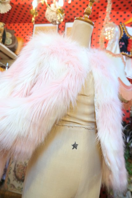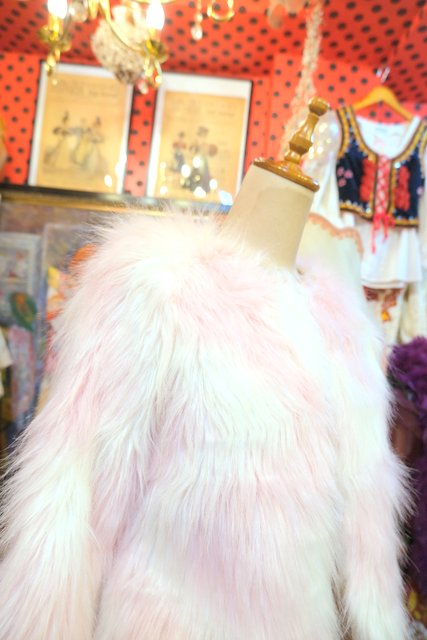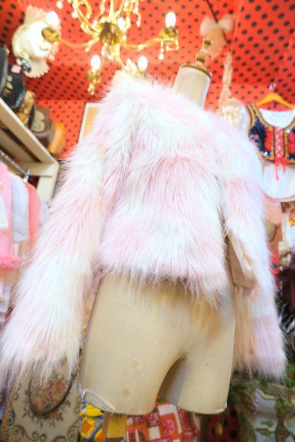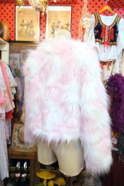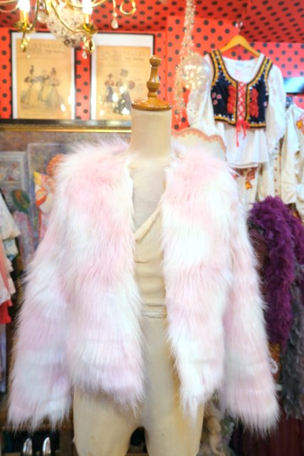 毛足の長い白×ピンクのフェイクファーが可愛らしいヨーロピアンファージャケット ★SALE★