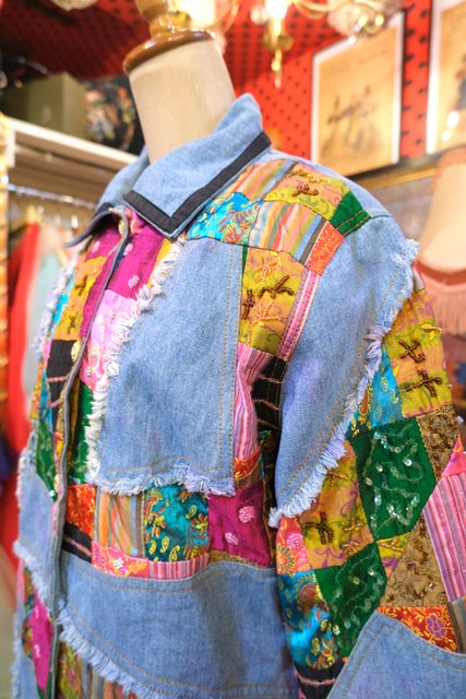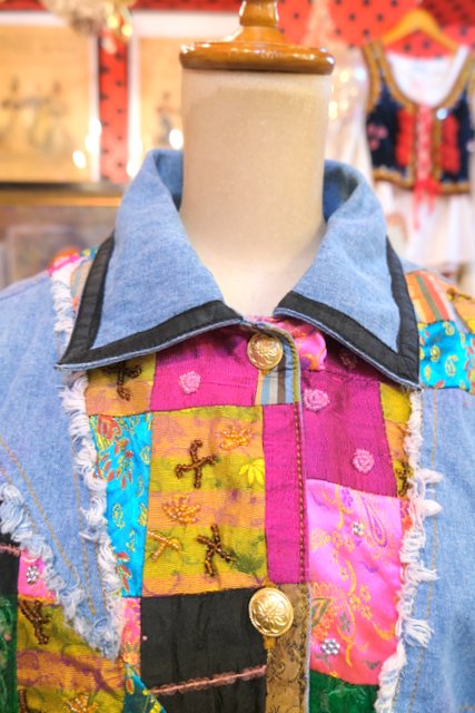 ヨーロッパ古着エスニックパッチワークデニムジャケット