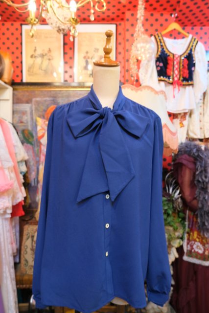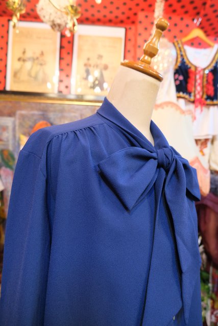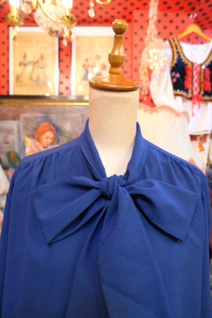エレガントにもマニッシュな印象にもなるリボンボウタイデザインが魅力的な1970年代頃のヨーロピアンヴィンテージブラウス