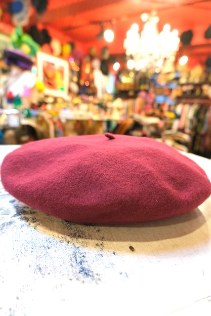 クラシカルなボルドー色にスペイン、フランスの国境であるバスク地方発祥のBeret basqueベレー帽子