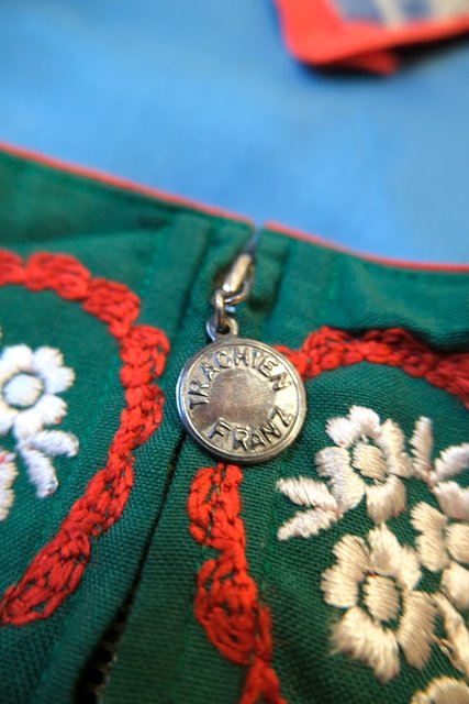 ドイツ南部からオーストリアチロル地方にかけての民族衣装ディアンドル エレガントでカラフルな刺繍にコイン付きファスナーが魅力的なヴィンテージチロルワンピース