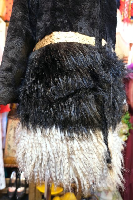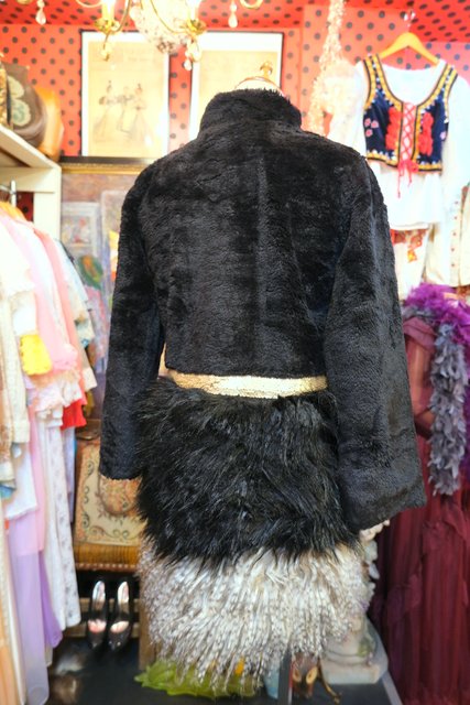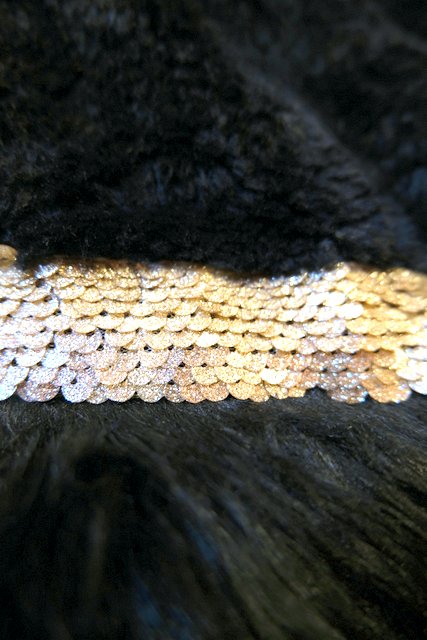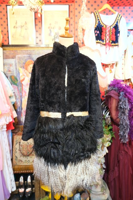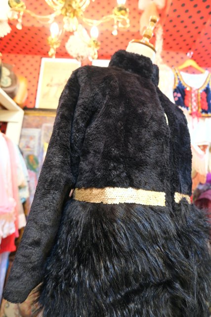 裾にかけてボリューミーなフェイクファー切り替えデザインにキラキラ輝くラメゴールドスパンコールが魅力的なヨーロピアンファーコート ★SALE★