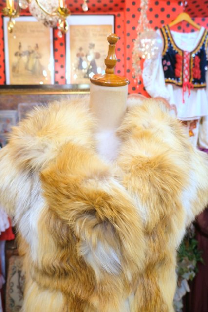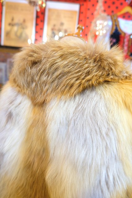 シルキーで密度が高く刺し毛が長いボリューム感にフレンチスリーブのようなシルエットがお洒落なヨーロピアンヴィンテージフォックスファーベストコート