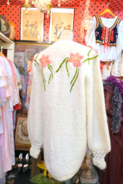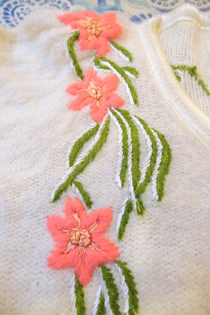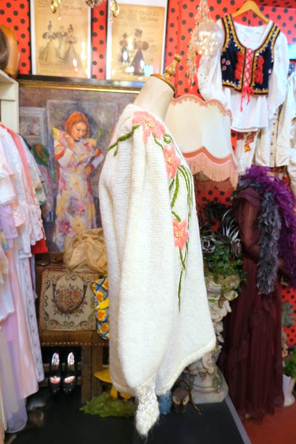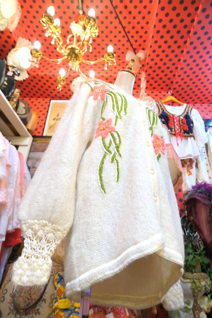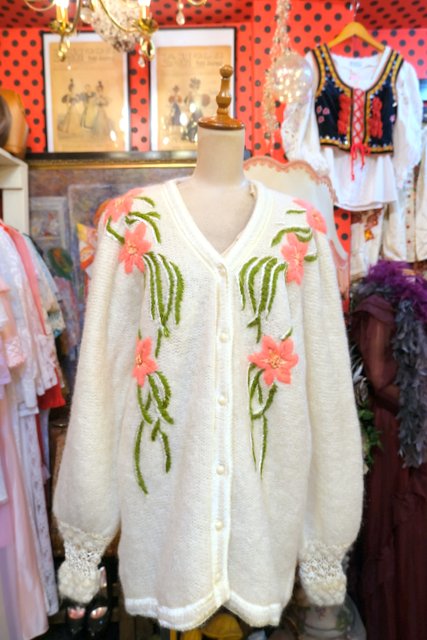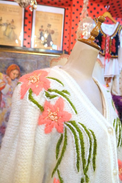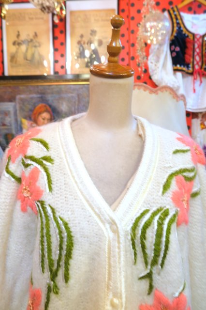 ヨーロッパ古着レトロガーリー花柄刺繍ニットジャケット