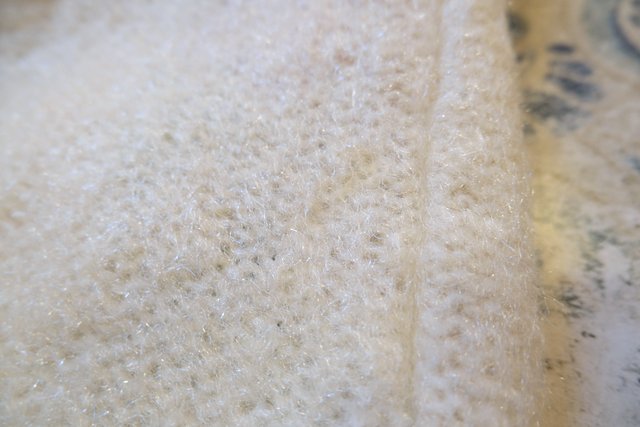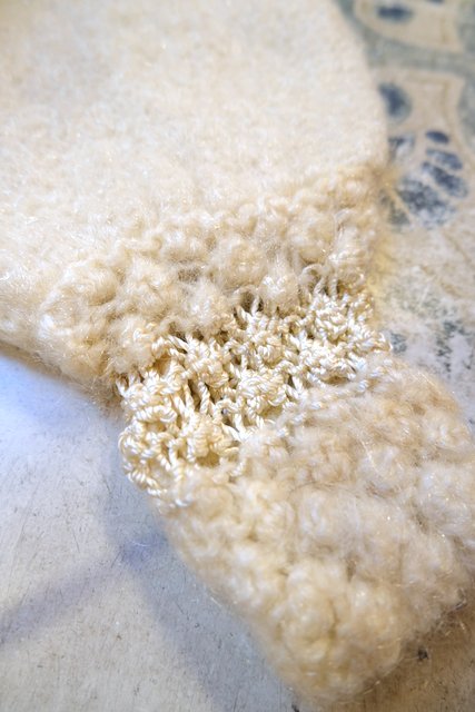 光沢がある白ベースに立体感があるお花刺繍や袖の膨らみが強調されるカフスデザインがお洒落な1980年代頃のヨーロピアンオーバーサイズニットジャケット ★SALE★