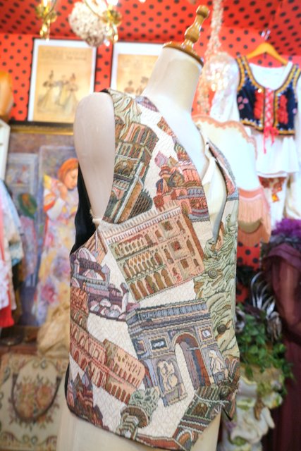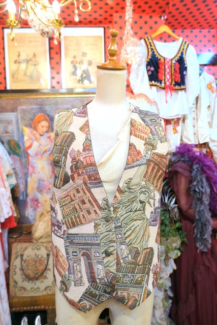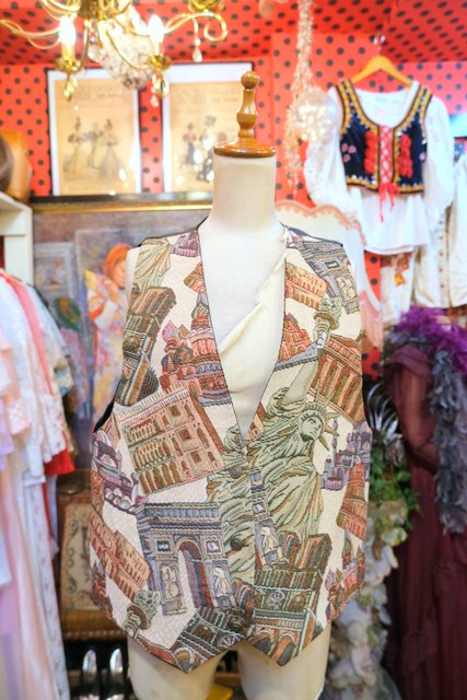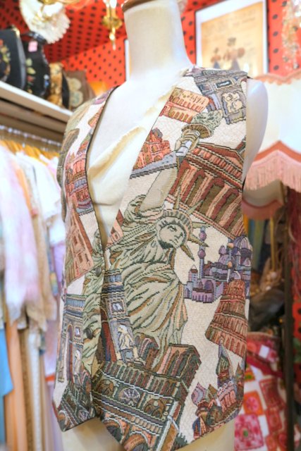 ヨーロッパ古着自由の女神像レトロゴブランベスト