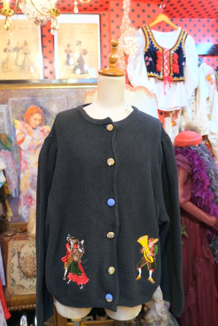 ドイツ南部からオーストリアチロル地方にかけての民族衣装ディアンドルのワッペン付きが魅力的なヨーロピアンヴィンテージチロルカーディガン ★SALE★