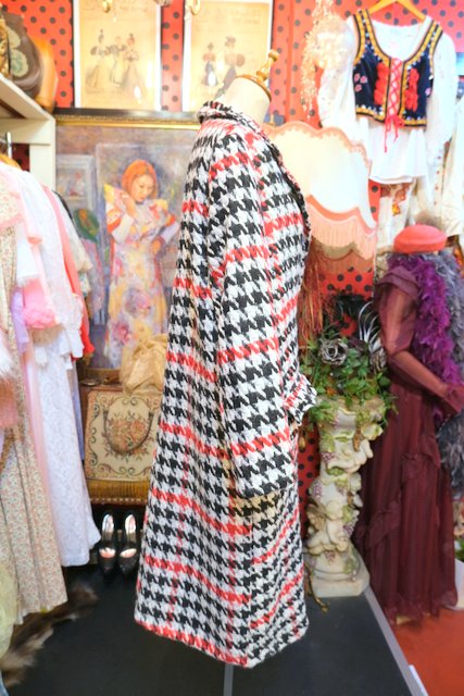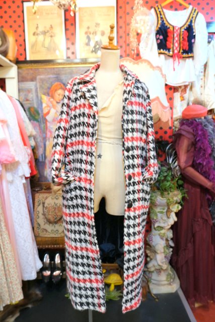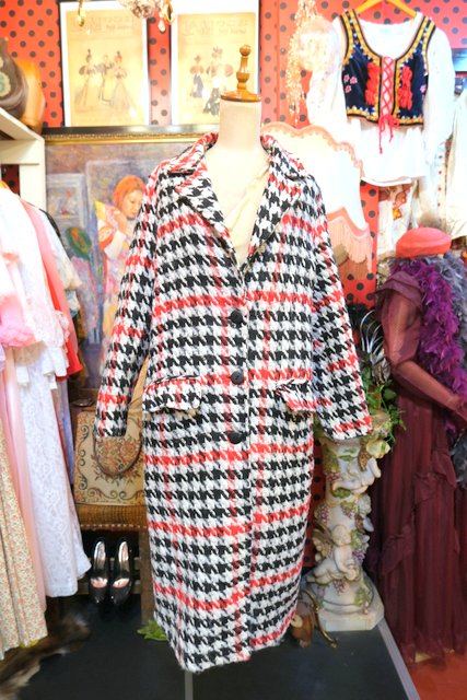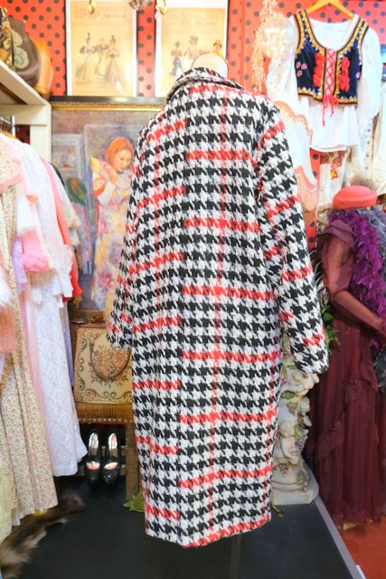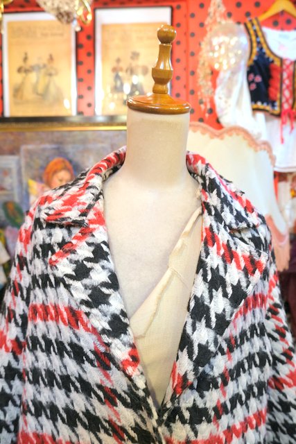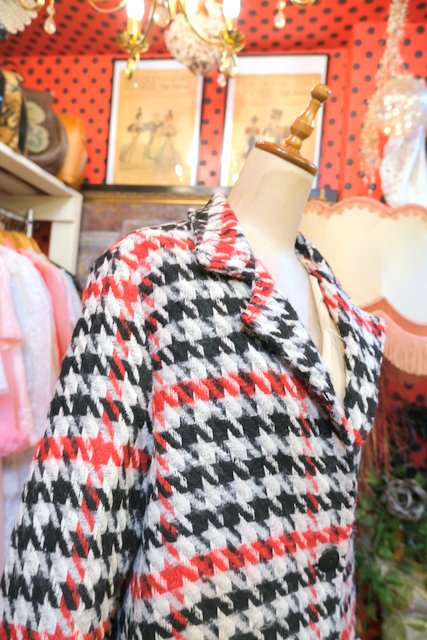 クラシカルな千鳥格子柄に白、赤、黒の目を惹くカラーやタイトなシルエットがカッコいいイタリア製ヴィンテージコート ★SALE★