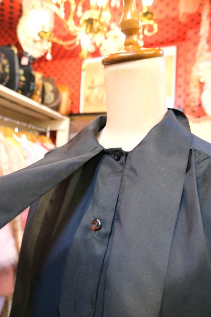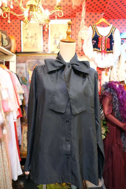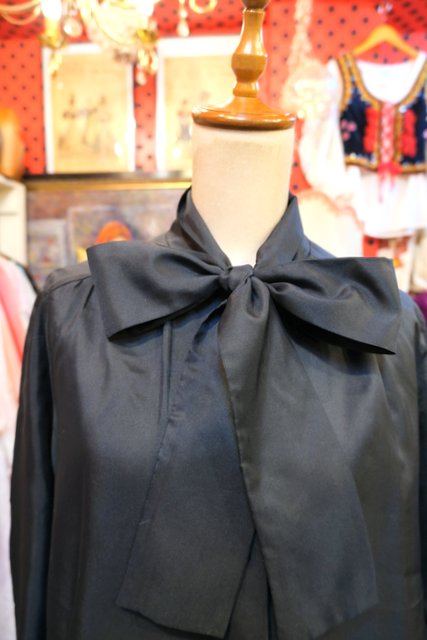 エレガントにもマニッシュな印象にもなるリボンボウタイデザインが魅力的な1970年代頃のヨーロピアンヴィンテージブラウス