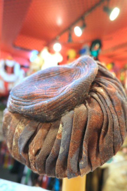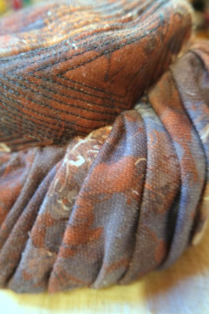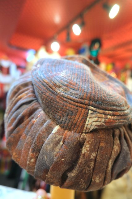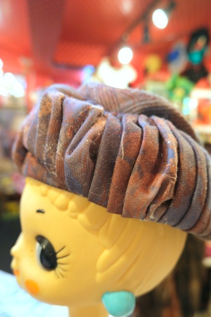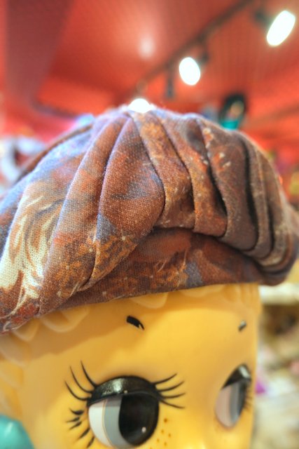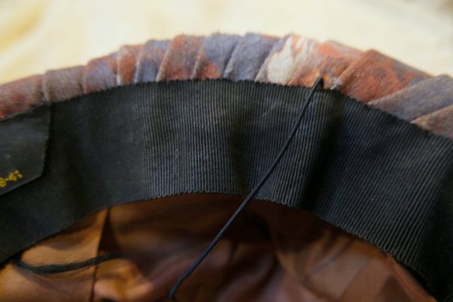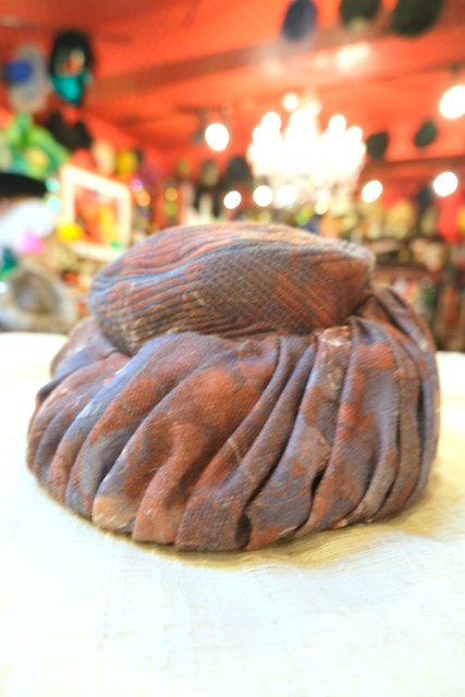エレガントな花柄生地にドレープ感があるギャザーデザインがお洒落で個性的なスペインで見つけた1950年代頃のヨーロピアンアンティーク帽子