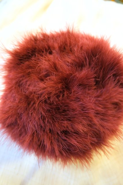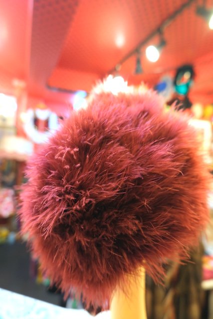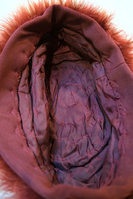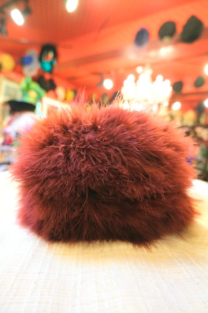 ふわふわ感が魅力のフェザーにワインレッド系の色が魅力的なフランスで見つけたリアルファー帽子