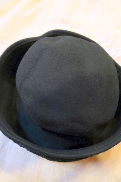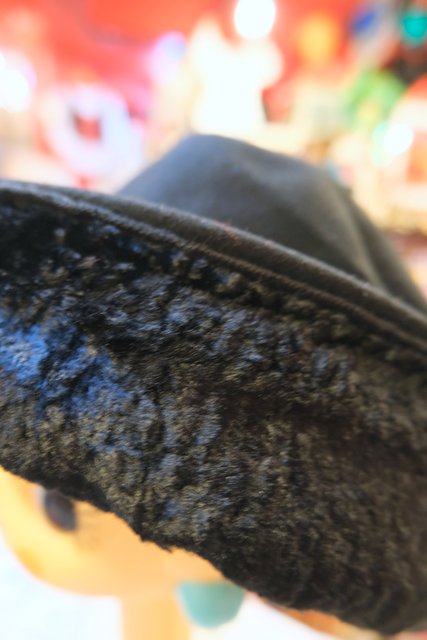 フェルト×フェイクファーのブリムが上向きに折り返ったデザインが魅力的なフランスで見つけたヨーロピアンレトロモダン帽子