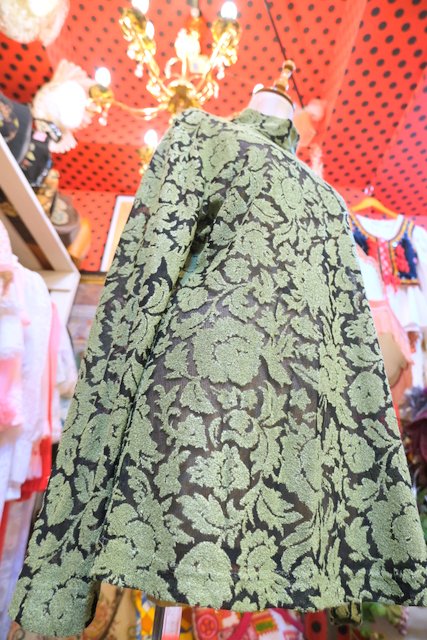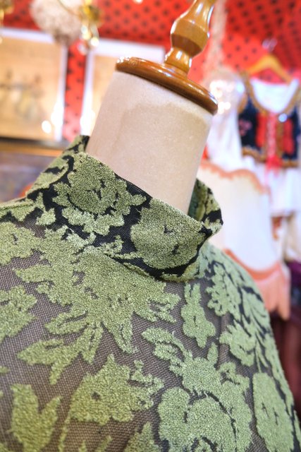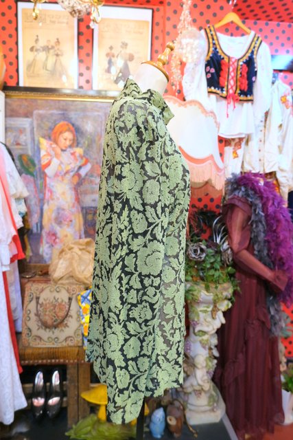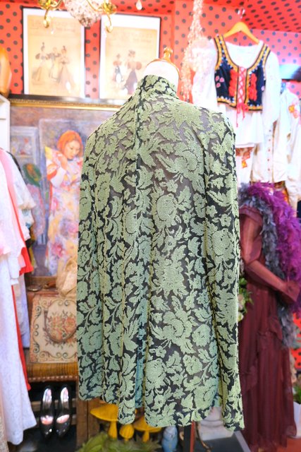 透け感がある黒シフォン×ボタニカル柄が魅力的な1980年代頃のヨーロピアンカットソー