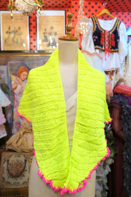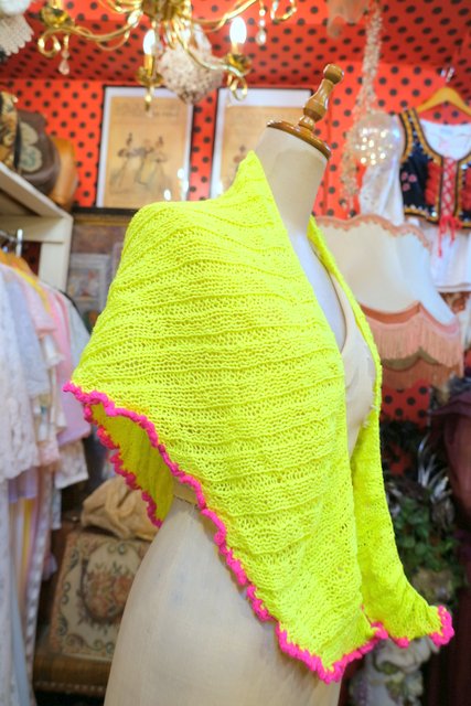 ヨーロッパ古着レトロポップ蛍光イエロー三角ショール