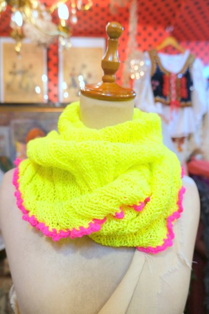 アクセントのポイントにおススメ!目を惹く蛍光イエロー×ピンクが可愛らしいヨーロピアン三角ショール