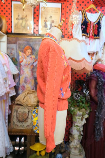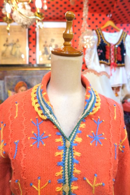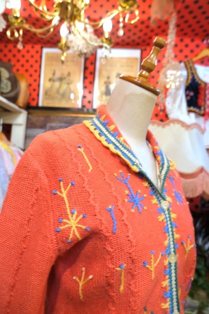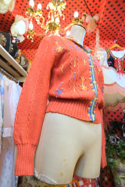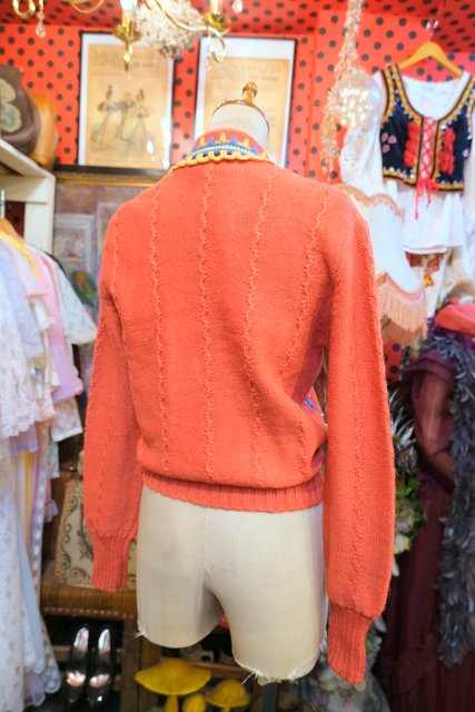 ヨーロッパ古着レトロガーリー刺繍ニットカーディガン
