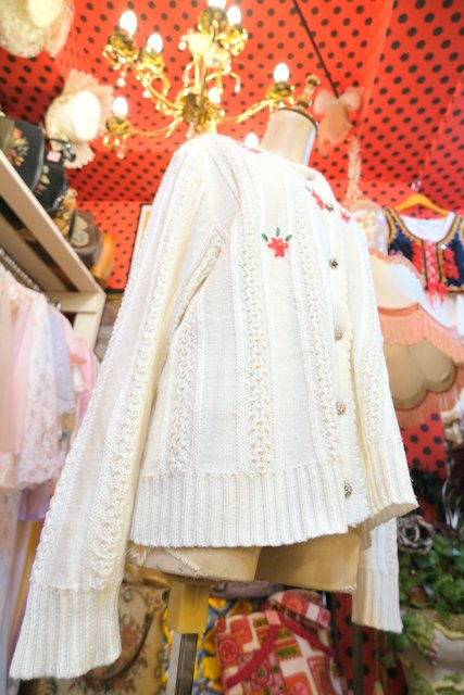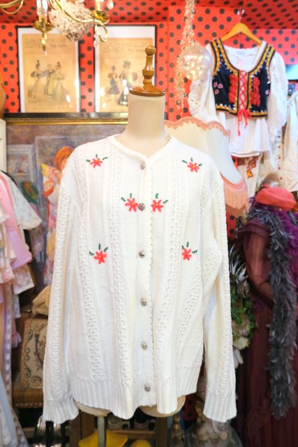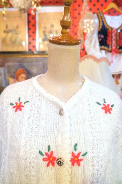 ヨーロッパ古着レトロガーリーお花刺繍カーディガン