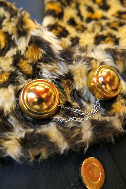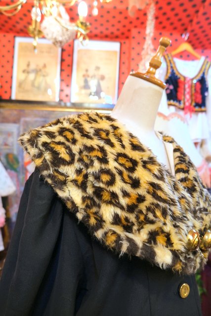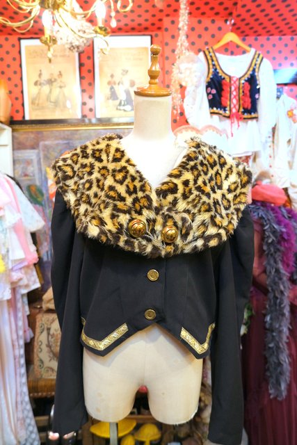 大きなレオパードフェイクファー襟にゴールドボタンやショート丈がカッコ可愛い1980年代頃のヨーロピアンヴィンテージジャケット