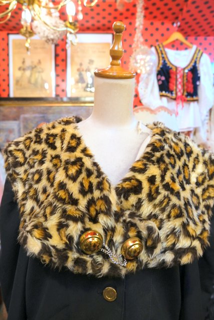 ヨーロッパ古着ヴィンテージヒョウ柄ファー襟ジャケット