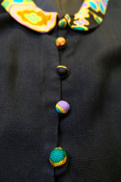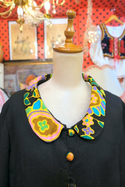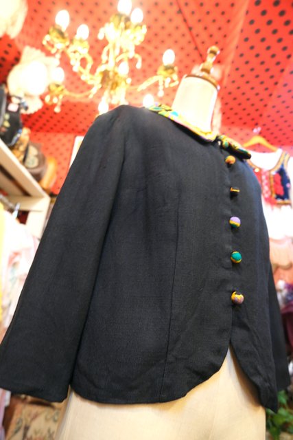 カラフルポップな襟やくるみボタンに8分袖丈が可愛らしい1950~60年代頃のヨーロピアンヴィンテージジャケット