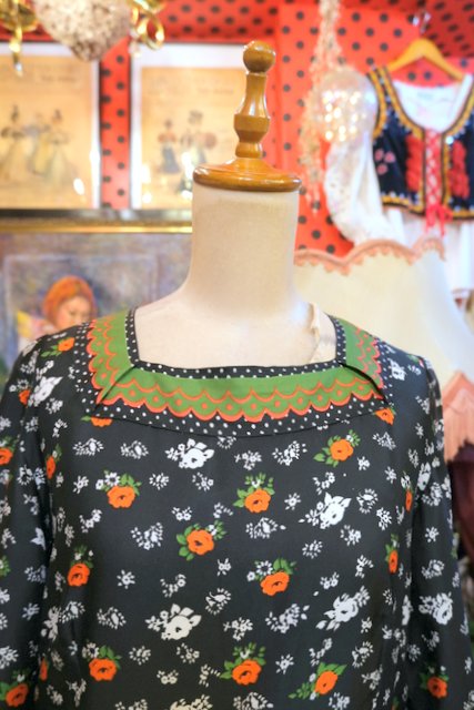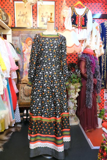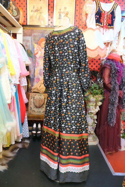 ヨーロッパ古着70sレトロ花柄ロングワンピース