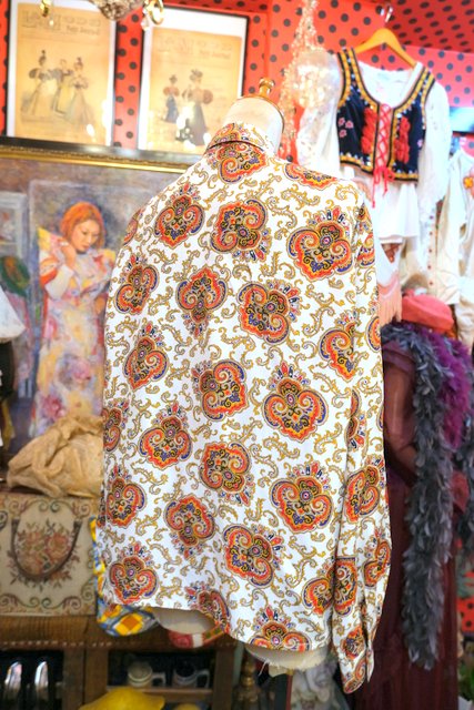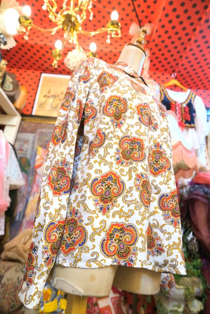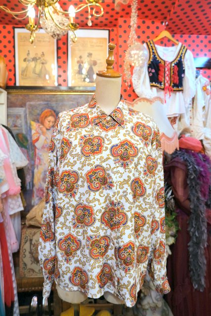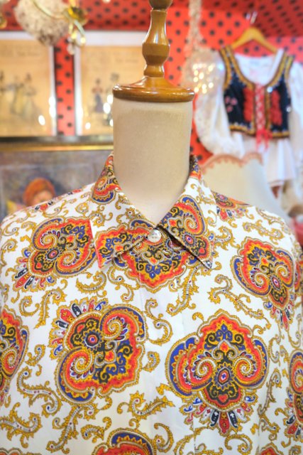ヨーロッパ古着レトロサイケデリック総柄ブラウス