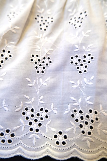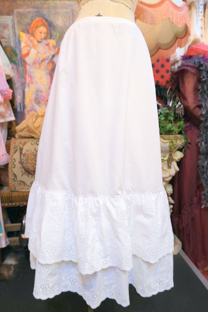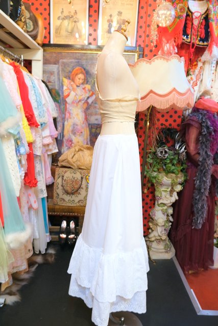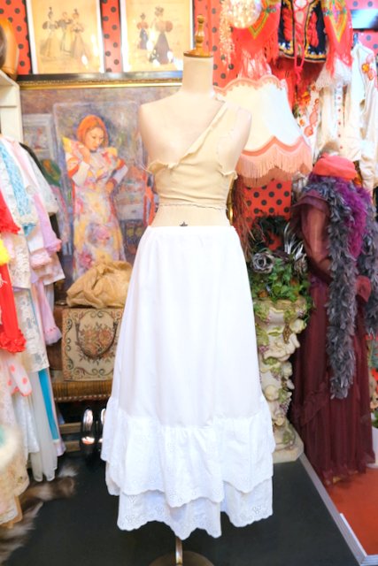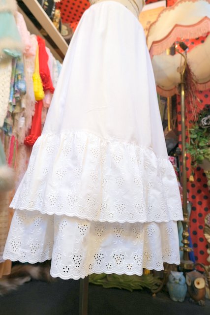 葡萄のような花柄カットワークレースフリルデザインが可愛らしい1980年代頃のヨーロピアンヴィンテージスカート スカート、ワンピースのインナーやデニムと合わせてもお洒落なアイテム!
