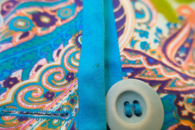 目を惹く赤×水色のヨーク切り返しやパールスナップボタンがお洒…