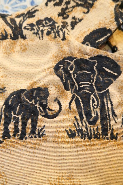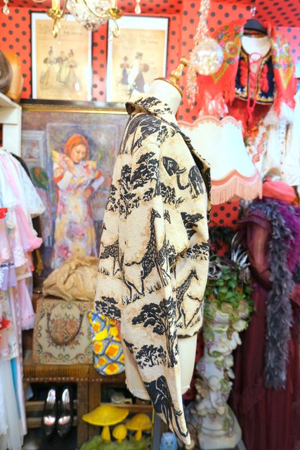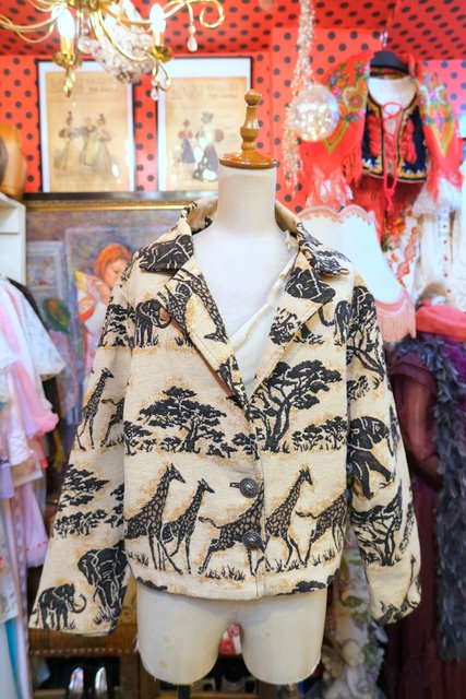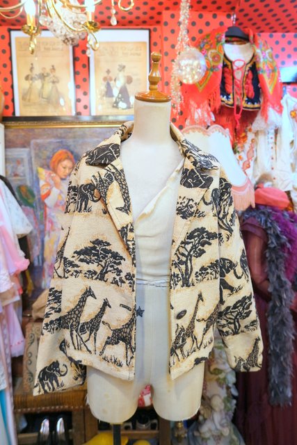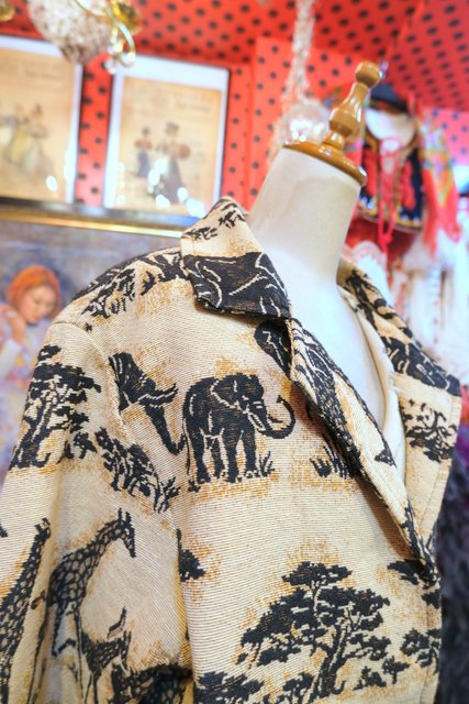 ゾウやキリンのアニマル柄にライオンボタンがカッコいい1980年代頃のUSA製オーバーサイズゴブランジャケット