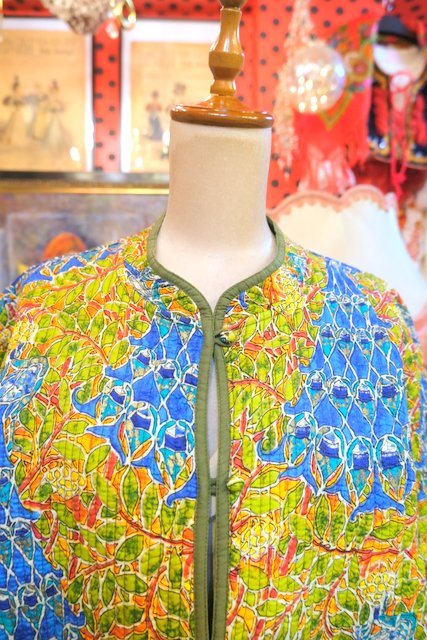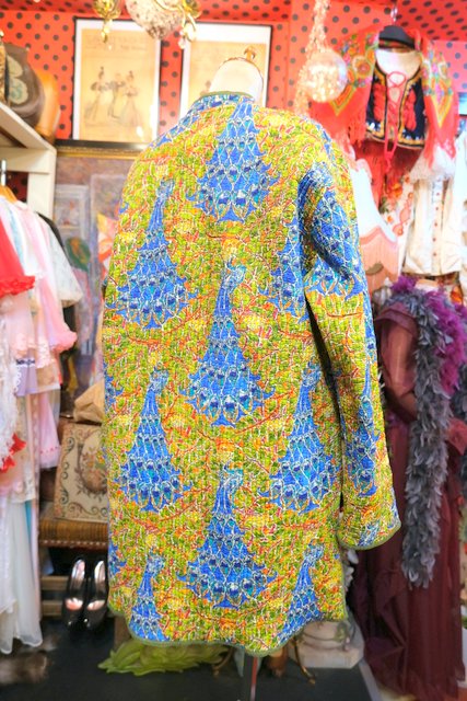 ヨーロッパ古着ボタニカル孔雀柄リバーシブルコート