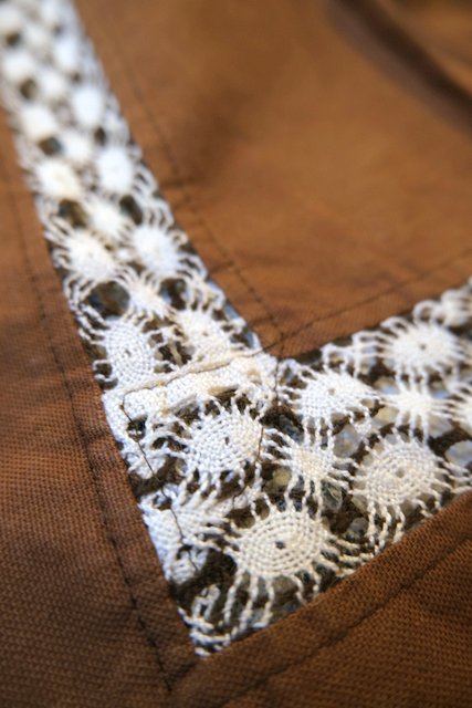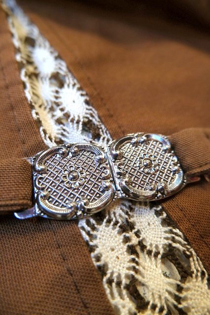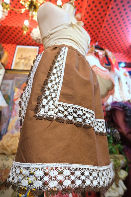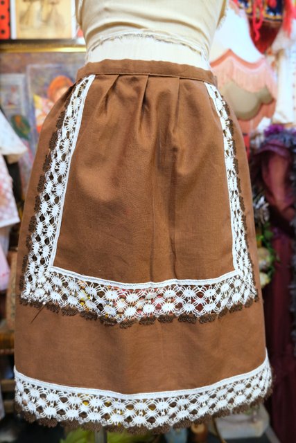 スカート、パンツ、ワンピースなどのアクセントのポイントにおススメ!レースやアンティーク金具がお洒落な1970年代頃のヨーロピアンヴィンテージチロルエプロン