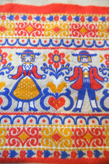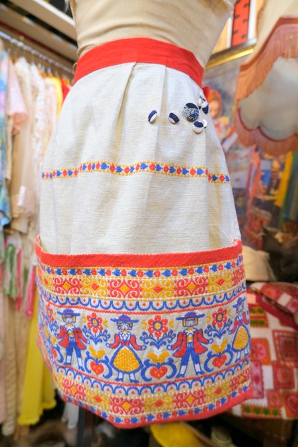 カラフルポップなチロリアンテープやディアンドル衣装のお人形刺繍が可愛らしい1970年代頃のオーストリア製ヴィンテージチロルエプロン