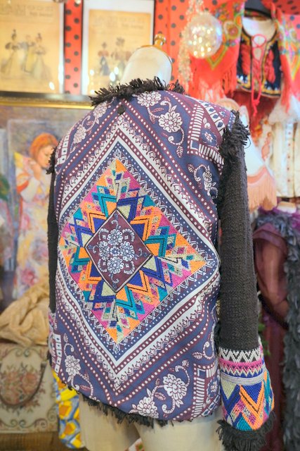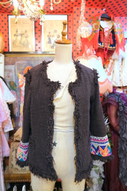 モジャモジャしたフリンジデザインやエスニックプリント×刺繍デザインがお洒落なヨーロピアンレトロジャケット ★SALE★
