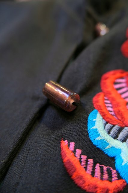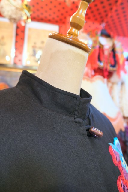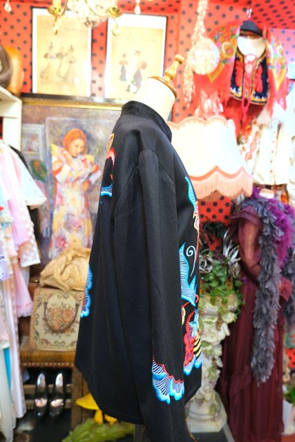 クールな印象のスタンドカラーにカラフルなエスニック刺繍やメタリックボタンが可愛らしいヨーロピアンオーバーサイズジャケット