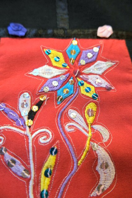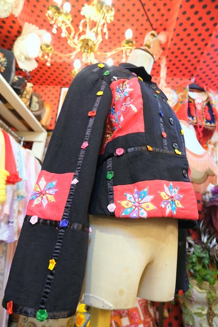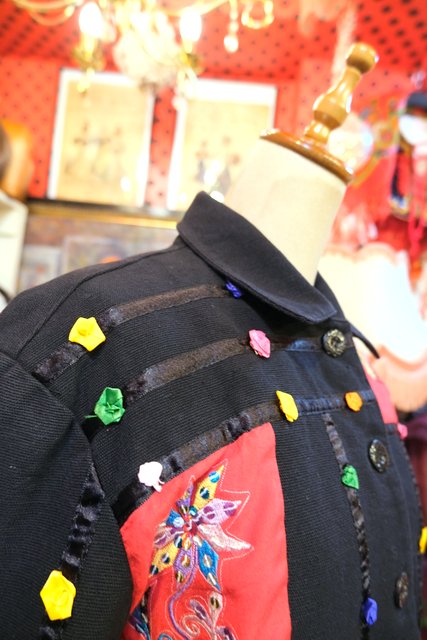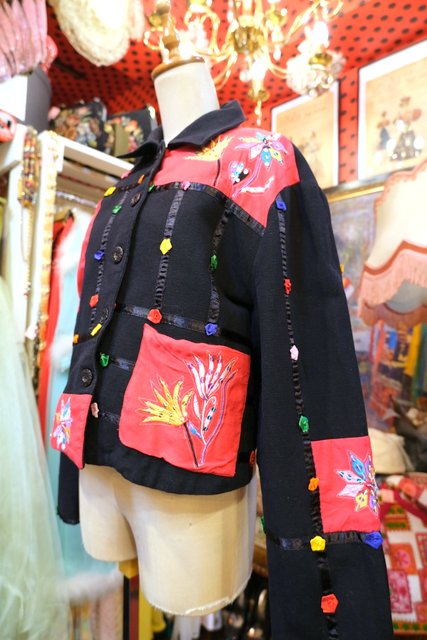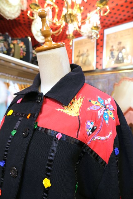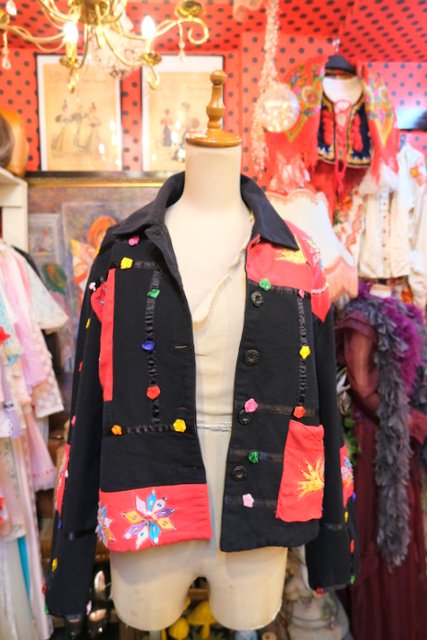 スパンコール付きのお花刺繍やカラフルポップなお花テープが可愛らしい1980年代頃のヨーロピアンオーバーサイズジャケット ★SALE★