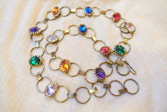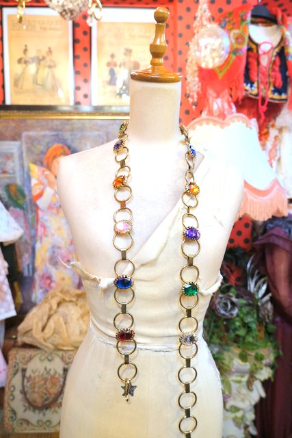 ヨーロッパ古着カラフルポップ宝石チェーンベルト