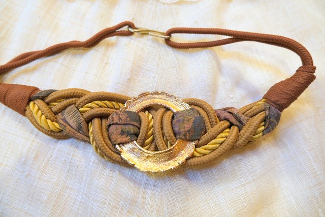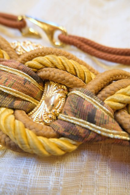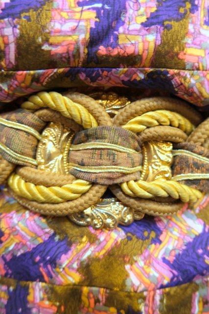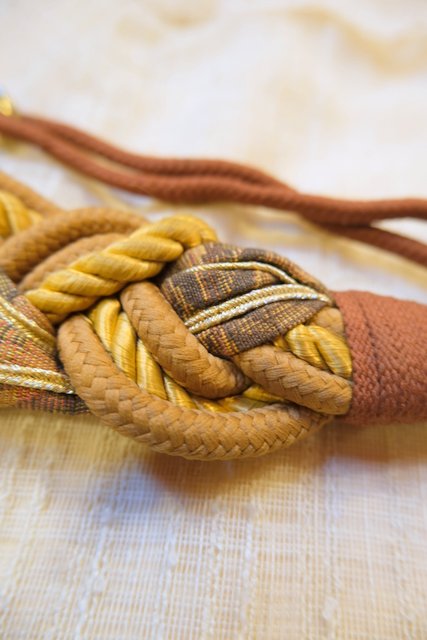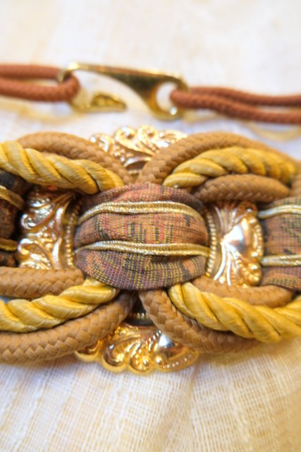 ゴブラン×紐編み込みデザインにゴールドバックルが素敵なヨーロピアンヴィンテージベルト