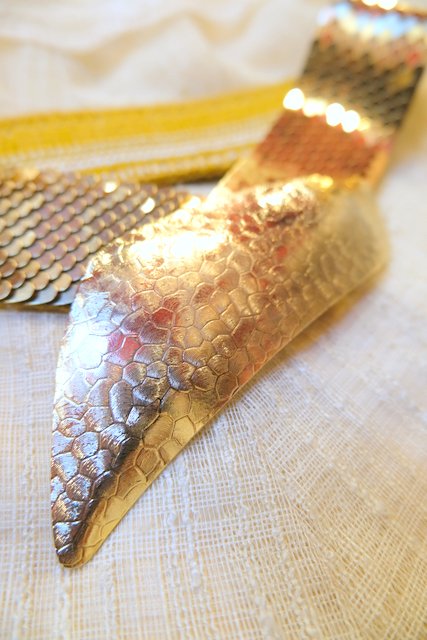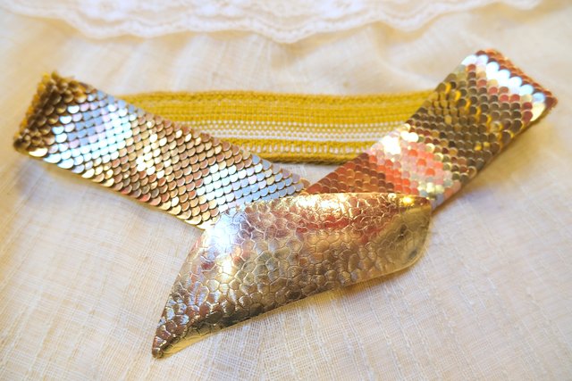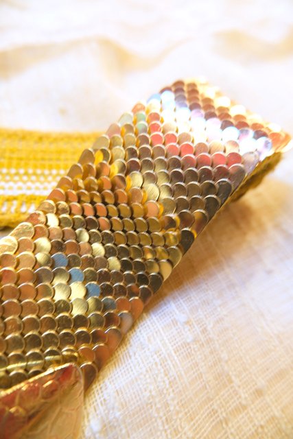 キラキラ輝く鱗デザインにインパクトたっぷりの大きなバックルが魅力的なヨーロピアンヴィンテージパーティーベルト