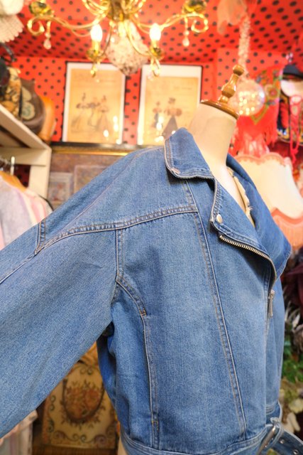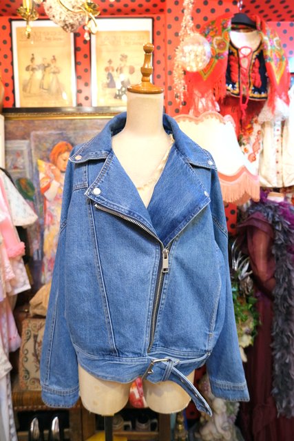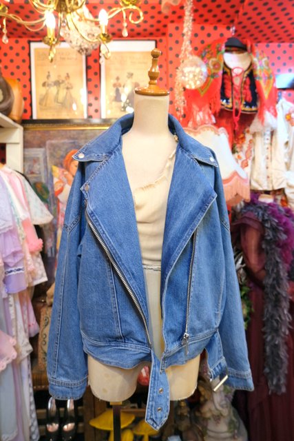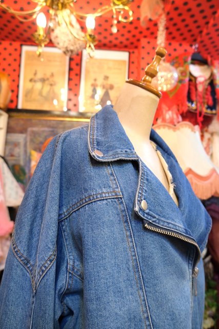 肩の切り替えがない落ち感×オーバーサイズデザインが華奢な雰囲気を演出してくれる1980年代頃のヨーロピアンデニムライダースジャケット
