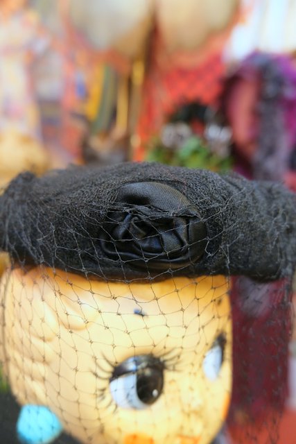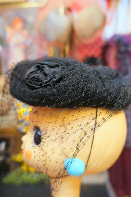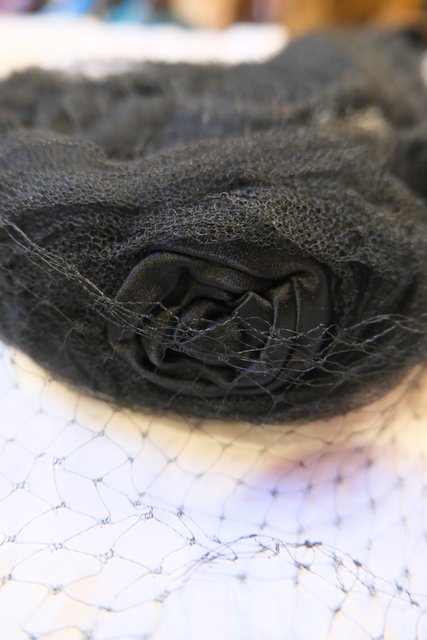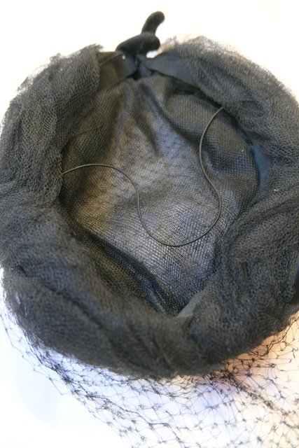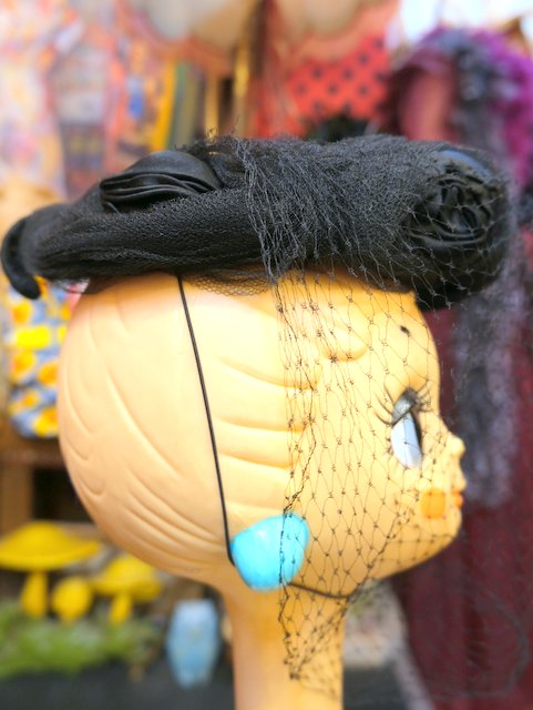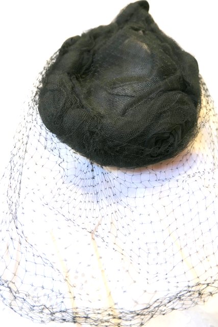 何枚も重なった黒チュールお花に繊細なベールデザインが素敵なスペインで見つけた1950年代頃のアンティーク帽子