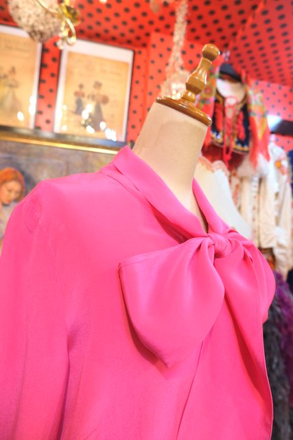 ヨーロッパ古着ビビッドカラーリボンボウタイブラウス