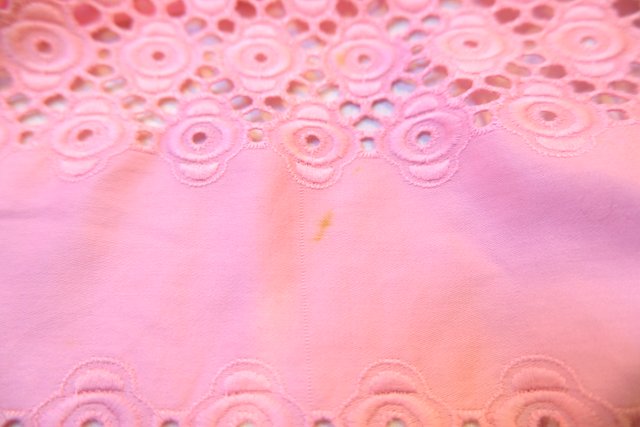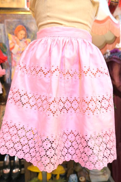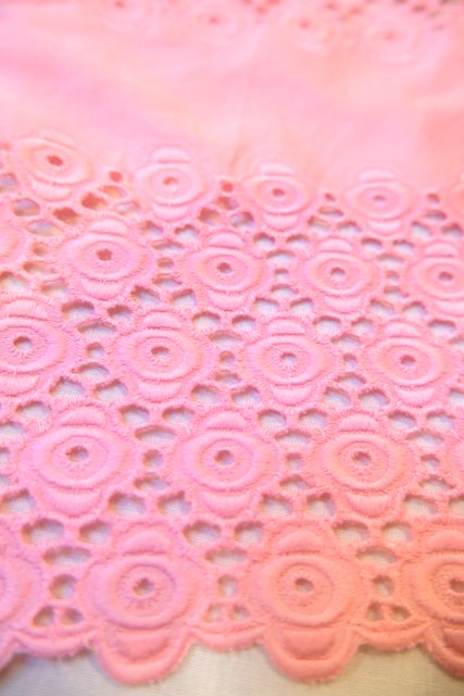 レトロガーリーなお花のカットワークレースや裾のスカラップデザ…