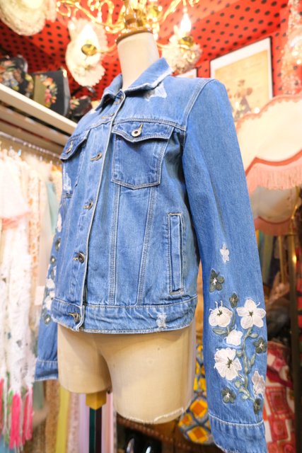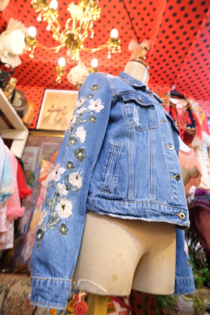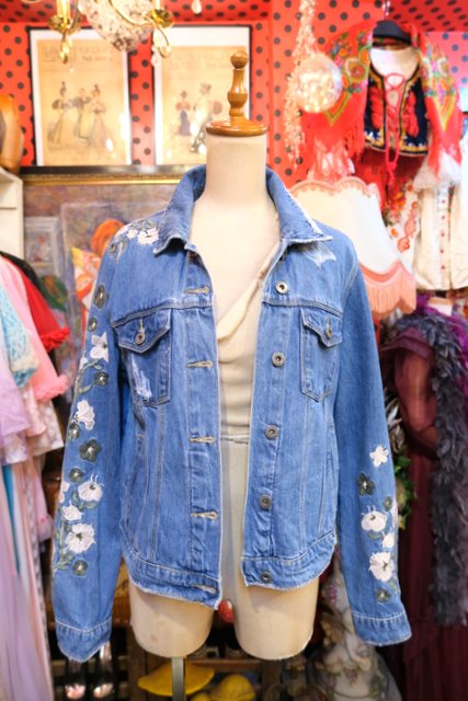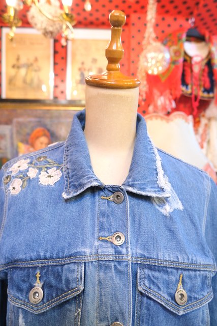華やかな花柄刺繍にダメージ加工がカッコいいヨーロピアンデニムジャケット ★SALE★