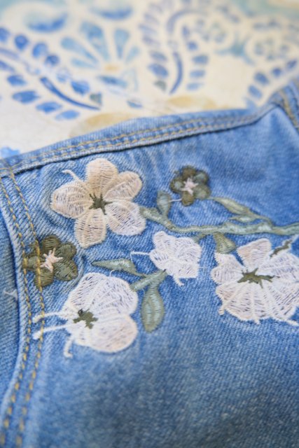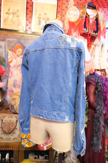 ヨーロッパ古着レトロガーリー花柄刺繍デニムジャケット