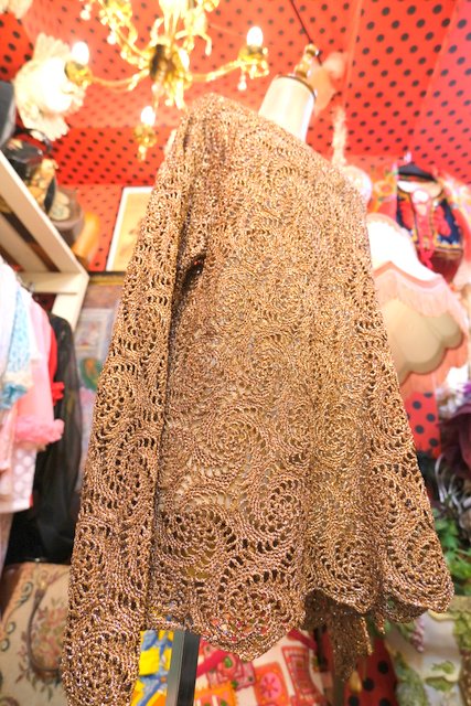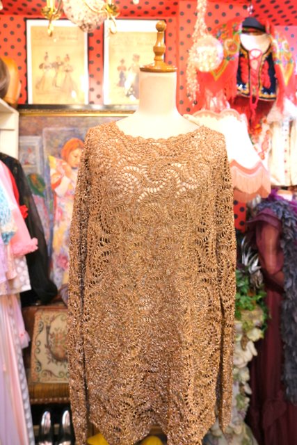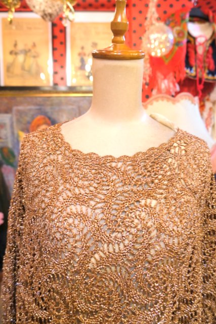 ヨーロッパ古着アンティークゴールドかぎ編みトップス