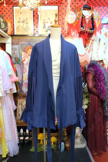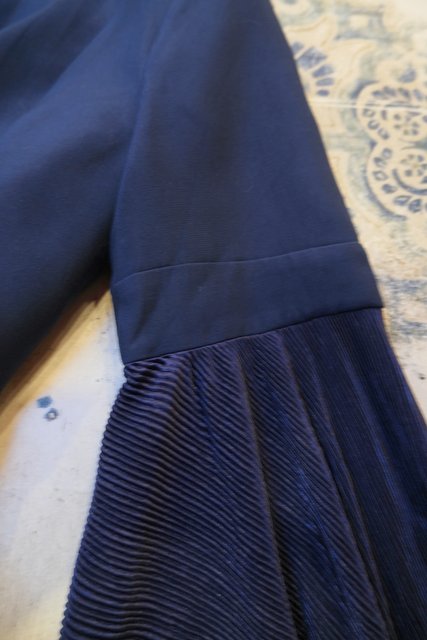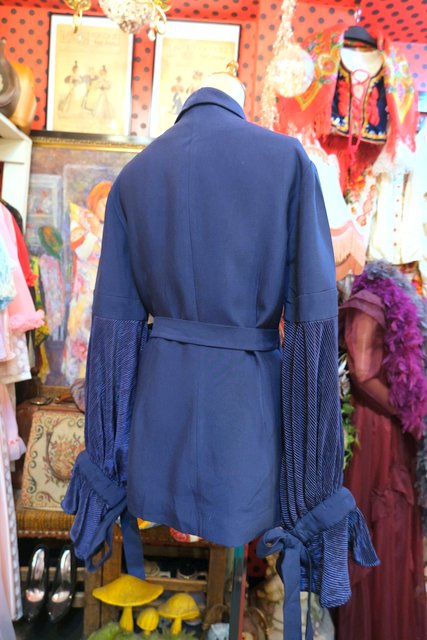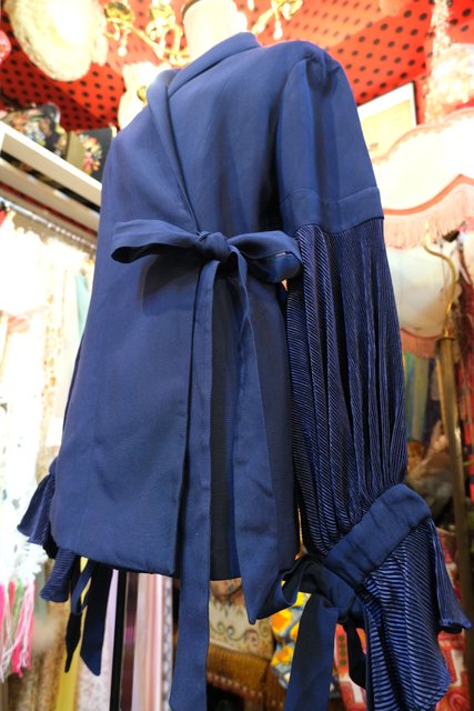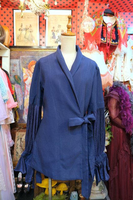 大人エレガンスなカシュクールデザインにテロっとした異素材アコーディオンプリーツ袖がお洒落で個性的なヨーロピアンデザインジャケット